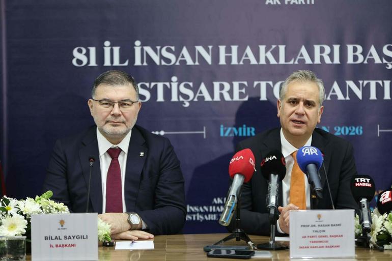 AK Parti Genel Başkan Yardımcısı ve İnsan Hakları Başkanı Hasan Basri Yalçın, İzmir’e geldi. Yalçın, program kapsamında AK Parti İzmir İl Başkanlığı’nda basın toplantısı düzenlendi. Toplantıya AK Parti İzmir İl Başkanı Bilal Saygılı, AK Parti Genel Merkez Kadın Kolları İnsan Hakları Başkanı Gerçek Tekin, AK Parti MYKY Üyesi İnsan Hakları Başkan Yardımcısı Arzu Silin Günaydın, AK Parti İzmir İl Başkan Yardımcısı ve İnsan Hakları Başkanı Tuğbanur Atılğan, AK Parti Kadın Kolları İzmir İl Başkanı Emel Dalkıran, AK Parti Gençlik Kolları İzmir İl Başkanı Mehmet Emin İçelli katıldı.