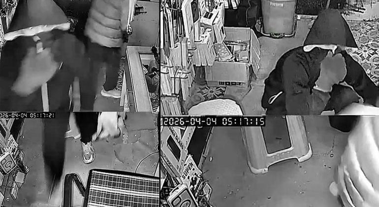 Görüntülere; kapıya tekme atarak iş yerine giren iki hırsızın cihazları çaldığı, hırsızlardan birinin diğerini sadece sıfır telefonları alması için yönlendirdiği yansıdı.