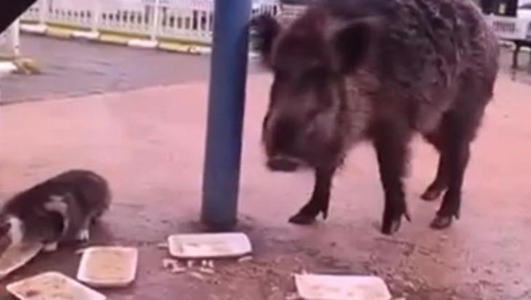 Domuzların bu yiyecekleri kedilerle yan yana ve hiçbir çatışma yaşamadan tüketmesi dikkat çekiyor. Yaban domuzlarının besin arayışı için kent merkezlerini mesken tutması ve sokak hayvanlarıyla aynı sofrayı paylaşması, tabiatın değiştiğine dair manzaralar oluşturuyor. İnsan nüfusuna bağlı habitat daralması ve ormandaki doğal besinlerin azalması, bu hayvanların şehre inme eğilimini artırıyor.