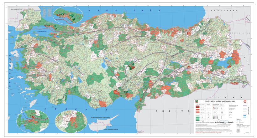 1/1.000.000 ölçekli Türkiye Nüfus Değişimi Haritası (2024-2025) birinci kere hazırlandı.