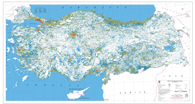 1/1.000.000 ölçekli Türkiye Yapı Yoğunluğu Haritası yayımlandı.