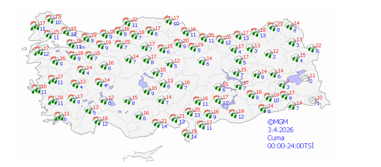 Üç Büyükşehir için beklenen hava durumuna ilişkin konuşan Çelik, “Önümüzdeki 3 gün yani Çarşamba, Perşembe ve Cuma günü için sağanak yağışı bekliyoruz. Ankara ve İstanbul’da en yüksek sıcaklıklar 16-17 derece civarında seriliyor. İzmir’de ise 17-19 derece bandında serilecek. İzmir’de özellikle Çarşamba ve Perşembe günü için gerçekleşecek sağanak yağışların yer yer kuvvetli olmasını bekliyoruz” dedi.
