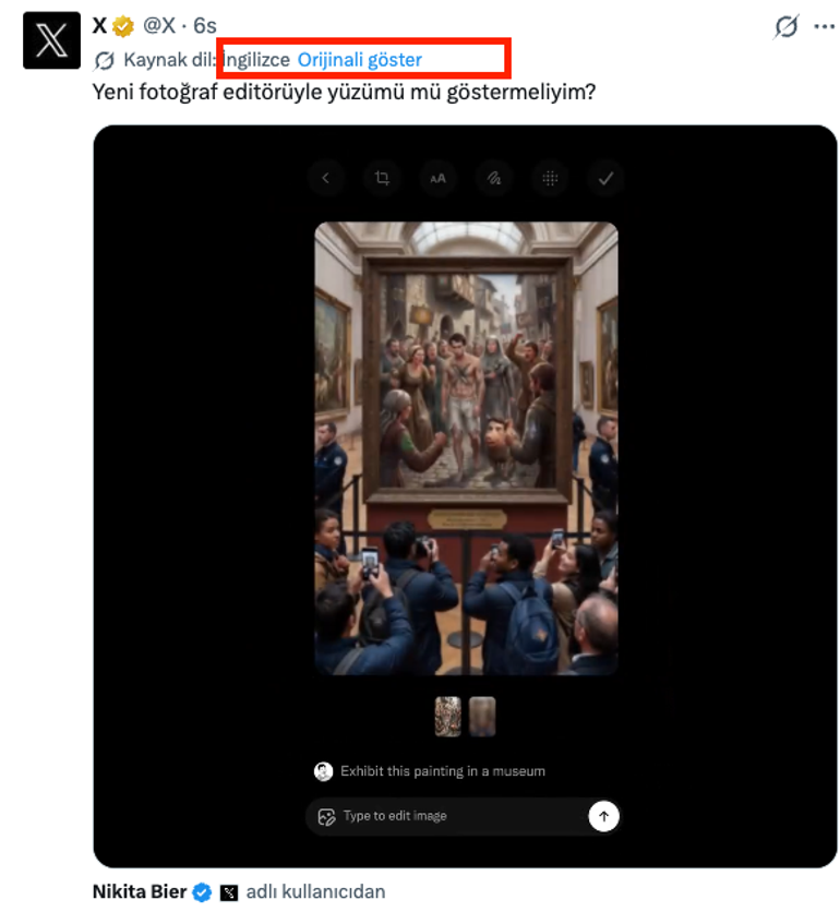 Yeni özellikle birlikte farklı dillerde paylaşılan içerikler, otomatik olarak kullanıcıların tercih ettiği dile çevriliyor. Atılan mesajı orijinal dilinde görmek istiyorsanız da hemen üst kısmında yer alan ‘orjinali göster‘ mesajına tıklamanız yeterli oluyor. X ürün yöneticisi Nikita Bier, yapılan geliştirmeler sayesinde çeviri kalitesinin son aylarda ciddi şekilde iyileştirildiğini belirtimiş. Yani X, çeviri konusunda uygulamayı geliştirmeye devam edecek.